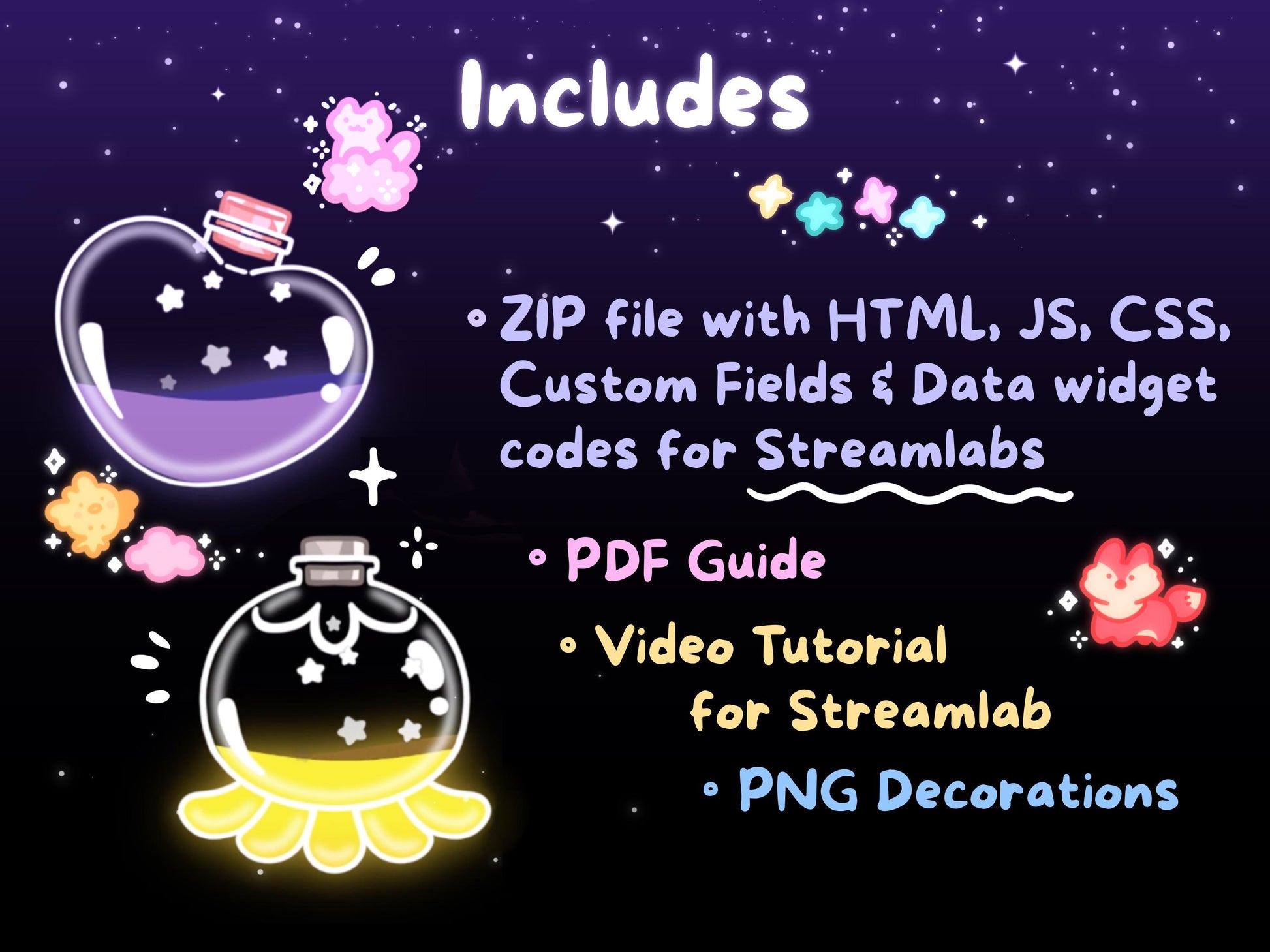 ✧ ZIP file with HTML, JS, CSS, Custom Fields, and Data widget codes for Streamlabs